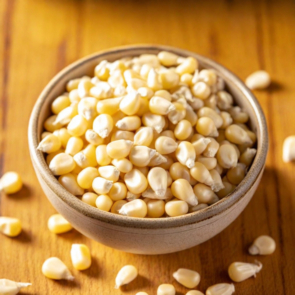 Maíz blanco procesado sin modificaciones genéticas, con trazabilidad total. Ideal por su bajo consumo de grasa. Recomendado para uso en productos alimenticios.